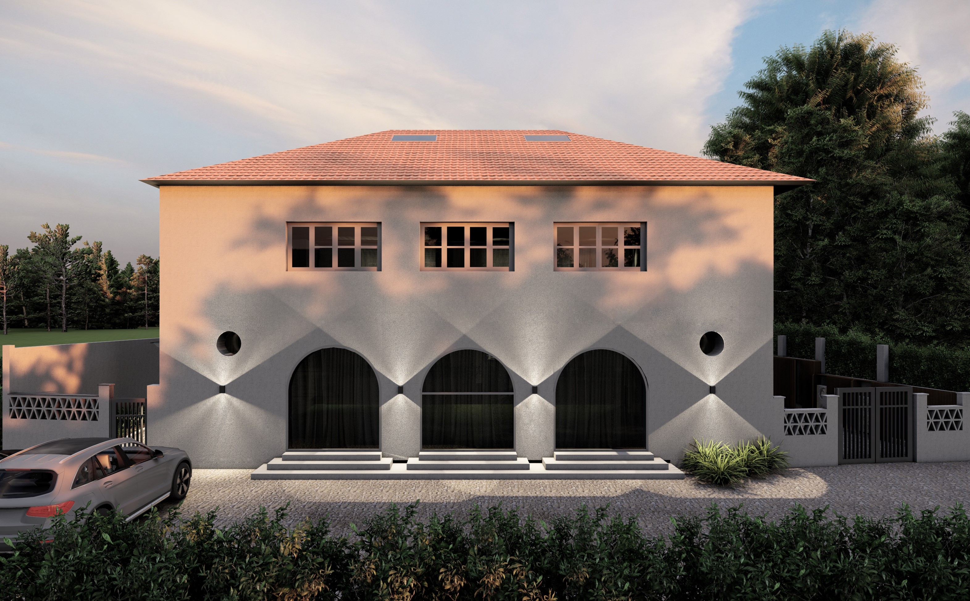 The rehabilitation project of a 1940s house is located on a plot of land forming an irregular-shaped polygon within a social housing neighbourhood from the early 20th century in the city of Lisbon. The house is characterised by 1940s construction in the Português Suave style, featuring rusticated stone, stone mouldings and trim around the openings, pitched roofs with overhanging eaves and red tiles, and arcades evoking medievalist influences.