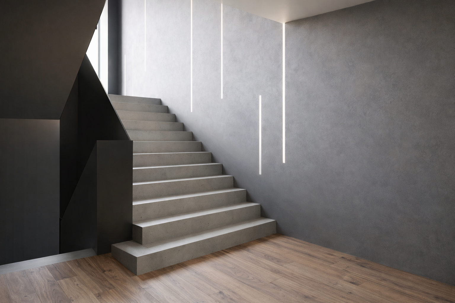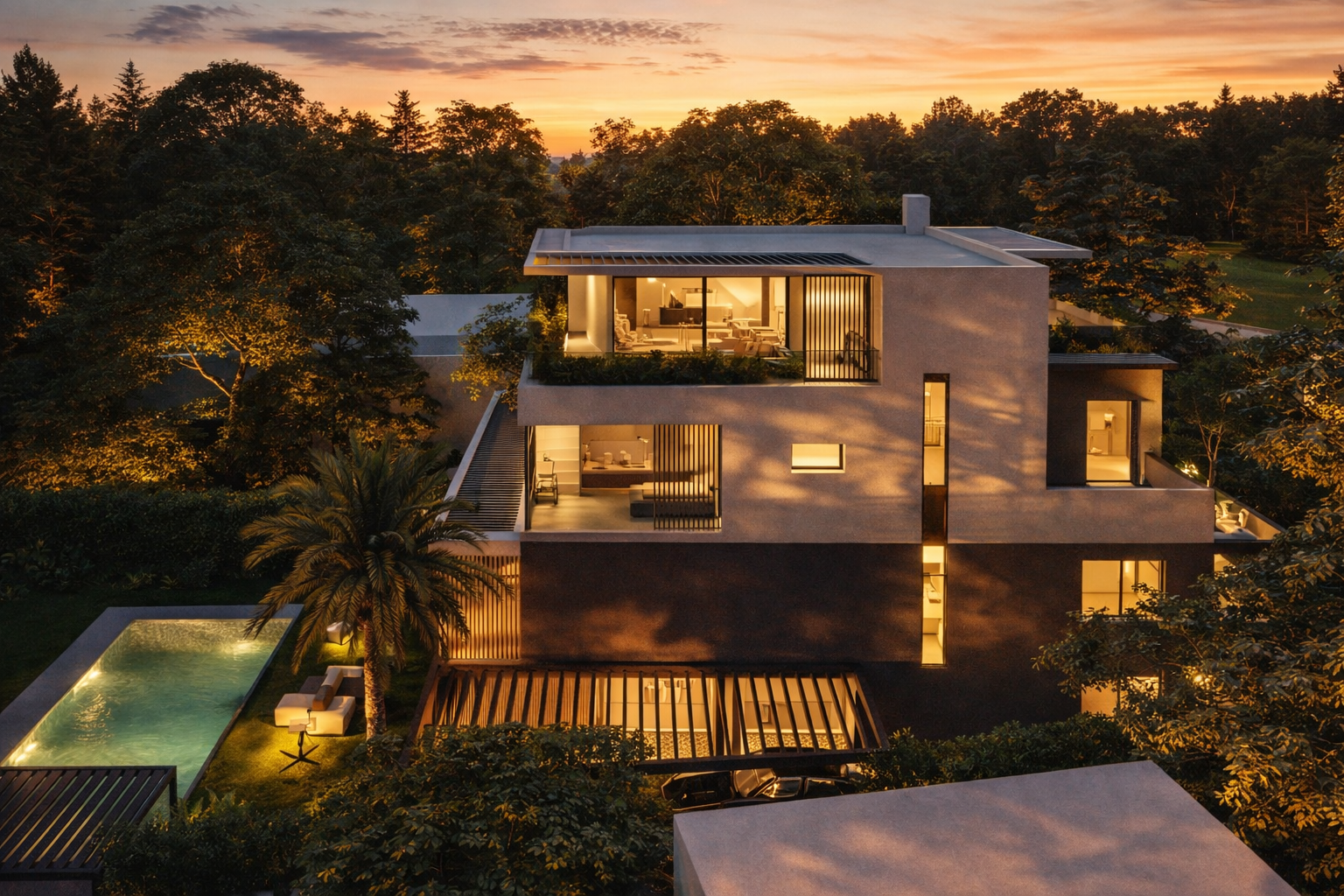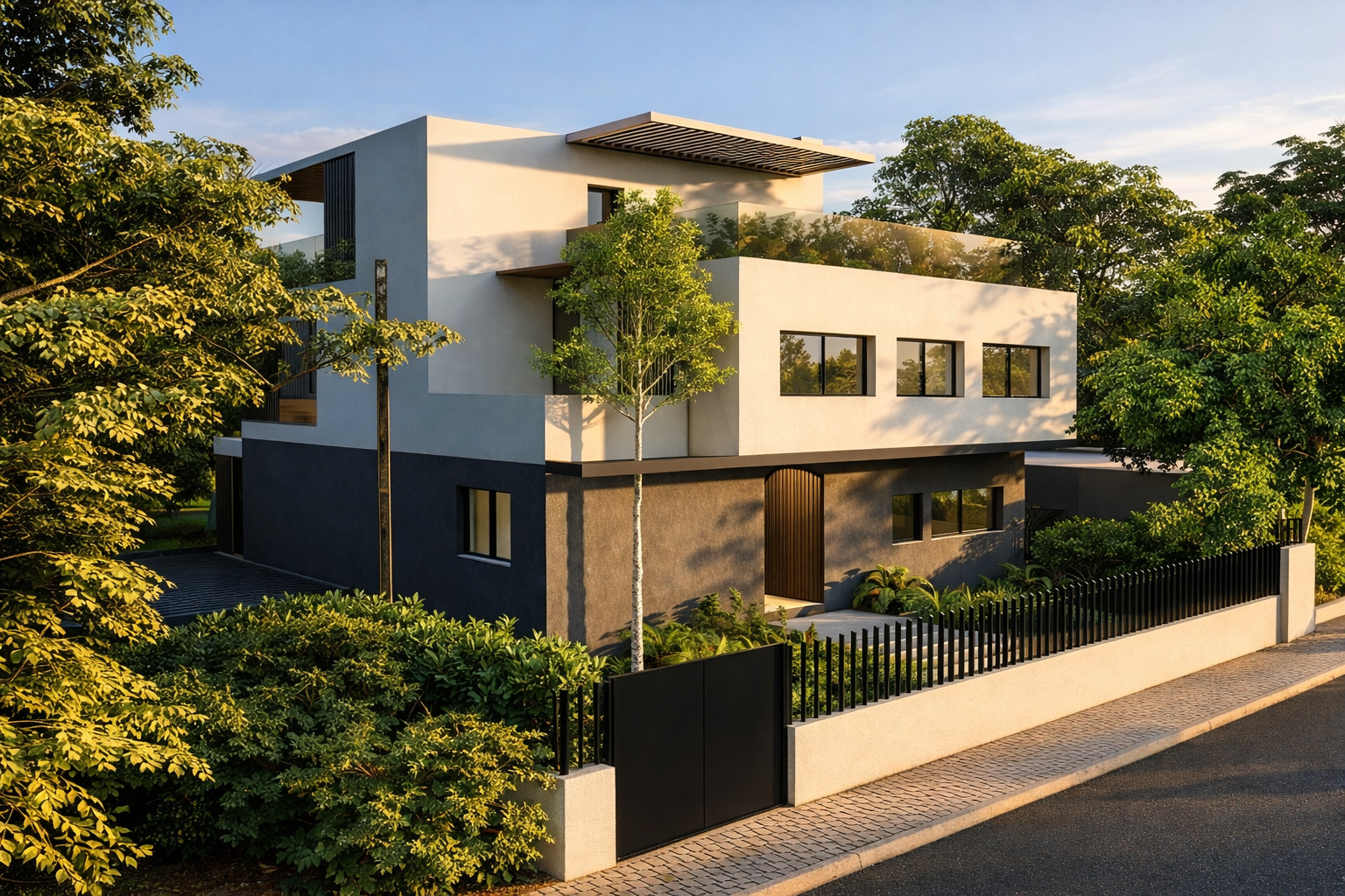 The project involved the refurbishment and renovation of the existing house, with the primary aim of modernising the exterior finishes. Key features include the application of microcement on part of the façade, the addition of sliding wooden shutters, and the creation of a new access to the rear balcony via a helical staircase.